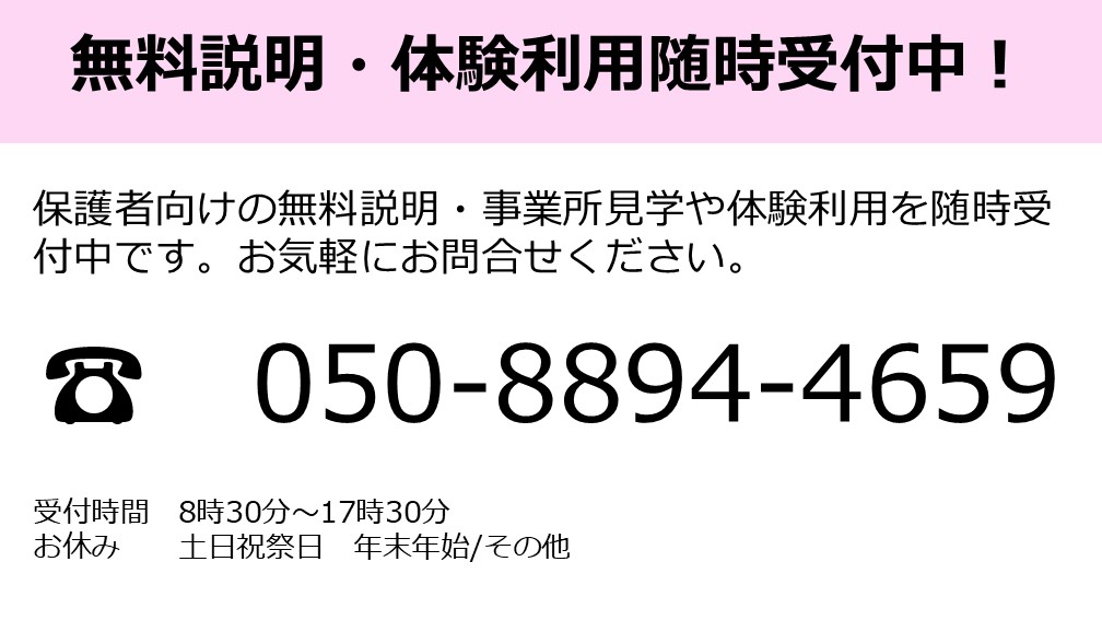 - 看護師が常駐し、医療的ケアが必要なお子さんにも対応しています。